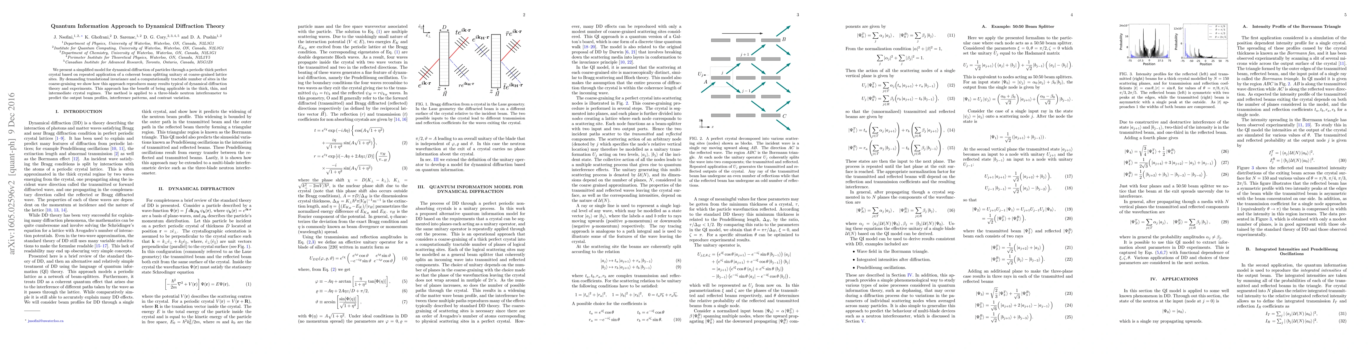 This paper proposes a quantum information approach to model dynamical diffraction in crystals, using a simplified unitary transformation at coarse-grained lattice sites. The method accurately reproduces typical dynamical diffraction results and is applicable across various crystal thickness regimes, demonstrated through a three-blade neutron interferometer experiment.