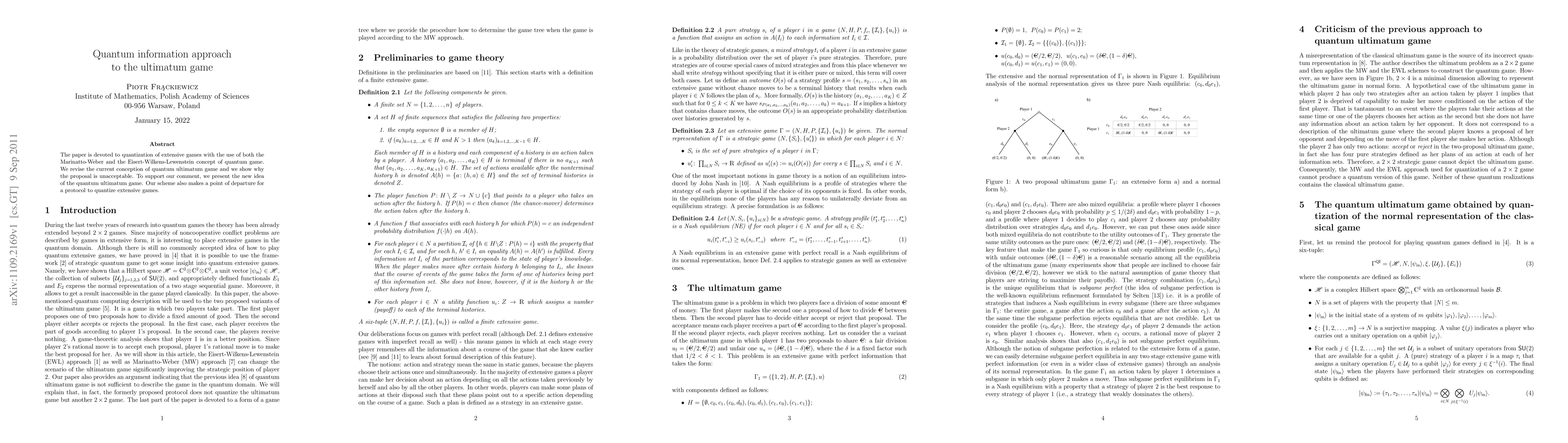 This paper quantizes the ultimatum game using the Marinatto-Weber and Eisert-Wilkens-Lewenstein frameworks, critiques the existing quantum ultimatum game conception, and proposes a new quantum approach for extensive games. The new idea aims to provide a protocol for quantizing such games.