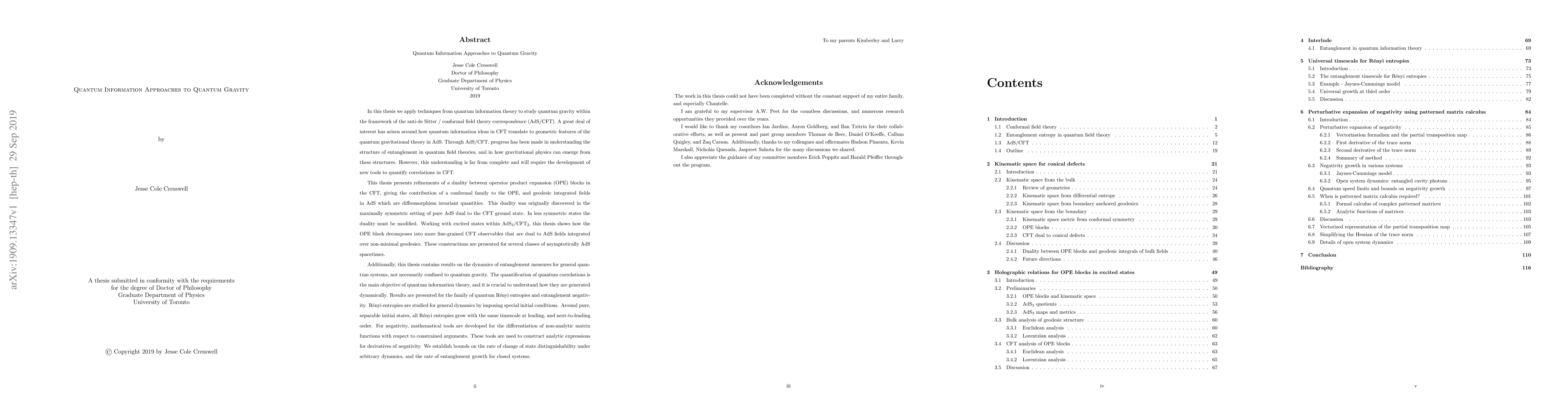 This thesis applies quantum information theory to study quantum gravity using AdS/CFT correspondence, showing how entanglement measures grow with time in closed systems.