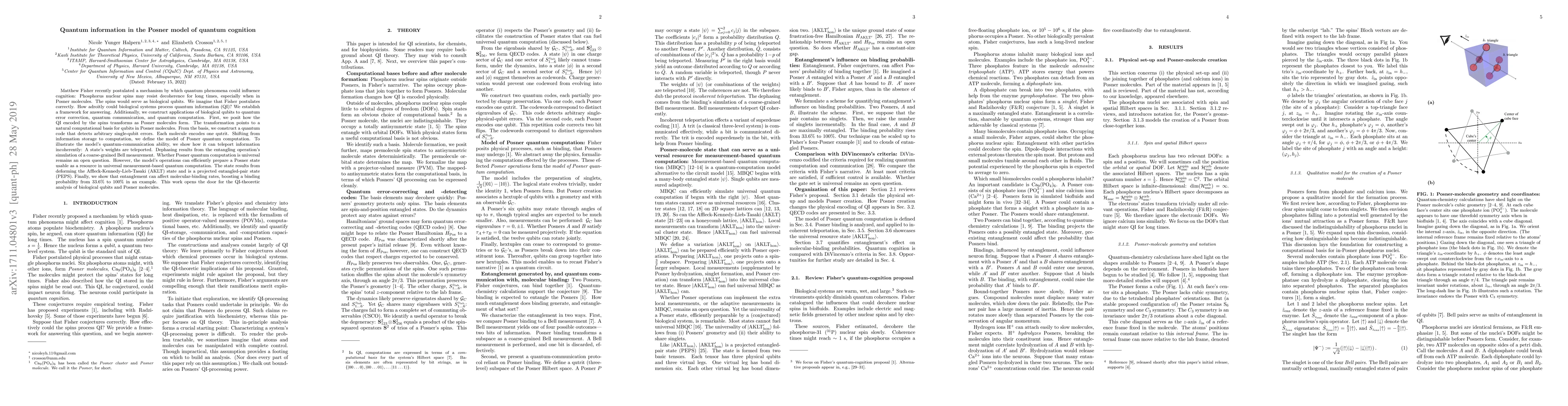 Matthew Fisher recently postulated a mechanism by which quantum phenomena could influence cognition: Phosphorus nuclear spins may resist decoherence for long times, especially when in Posner molecules. The spins would serve as biological qubits. We imagine that Fisher postulates correctly. How adroitly could biological systems process quantum information (QI)? We establish a framework for answering. Additionally, we construct applications of biological qubits to quantum error correction, quantum communication, and quantum computation. First, we posit how the QI encoded by the spins transforms as Posner molecules form. The transformation points to a natural computational basis for qubits in Posner molecules. From the basis, we construct a quantum code that detects arbitrary single-qubit errors. Each molecule encodes one qutrit. Shifting from information storage to computation, we define the model of Posner quantum computation. To illustrate the model's quantum-communication ability, we show how it can teleport information incoherently: A state's weights are teleported. Dephasing results from the entangling operation's simulation of a coarse-grained Bell measurement. Whether Posner quantum computation is universal remains an open question. However, the model's operations can efficiently prepare a Posner state usable as a resource in universal measurement-based quantum computation. The state results from deforming the Affleck-Kennedy-Lieb-Tasaki (AKLT) state and is a projected entangled-pair state (PEPS). Finally, we show that entanglement can affect molecular-binding rates, boosting a binding probability from 33.6% to 100% in an example. This work opens the door for the QI-theoretic analysis of biological qubits and Posner molecules.