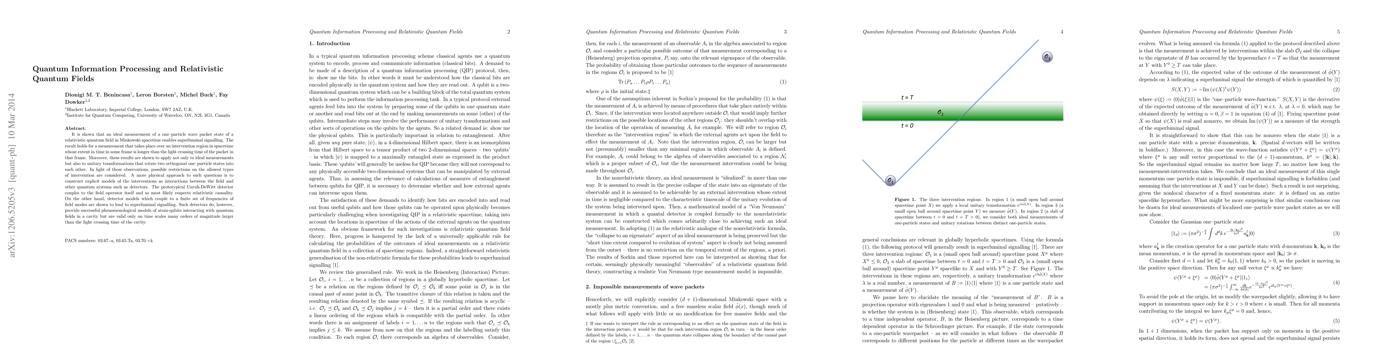 It is shown that an ideal measurement of a one-particle wave packet state of a relativistic quantum field in Minkowski spacetime enables superluminal signalling. The result holds for a measurement that takes place over an intervention region in spacetime whose extent in time in some frame is longer than the light-crossing time of the packet in that frame. Moreover, these results are shown to apply not only to ideal measurements but also to unitary transformations that rotate two orthogonal one-particle states into each other. In light of these observations, possible restrictions on the allowed types of intervention are considered. A more physical approach to such questions is to construct explicit models of the interventions as interactions between the field and other quantum systems such as detectors. The prototypical Unruh-DeWitt detector couples to the field operator itself and so most likely respects relativistic causality. On the other hand, detector models which couple to a finite set of frequencies of field modes are shown to lead to superluminal signalling. Such detectors do, however, provide successful phenomenological models of atom-qubits interacting with quantum fields in a cavity but are valid only on time scales many orders of magnitude larger than the light-crossing time of the cavity.