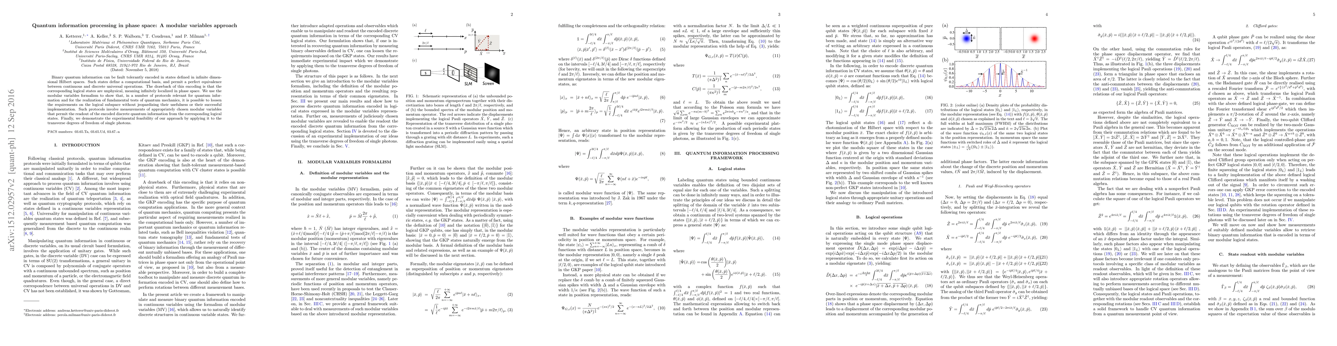 The paper introduces a modular variables approach for quantum information processing in phase space, enabling fault-tolerant encoding and readout of discrete quantum information using bounded periodic observables.