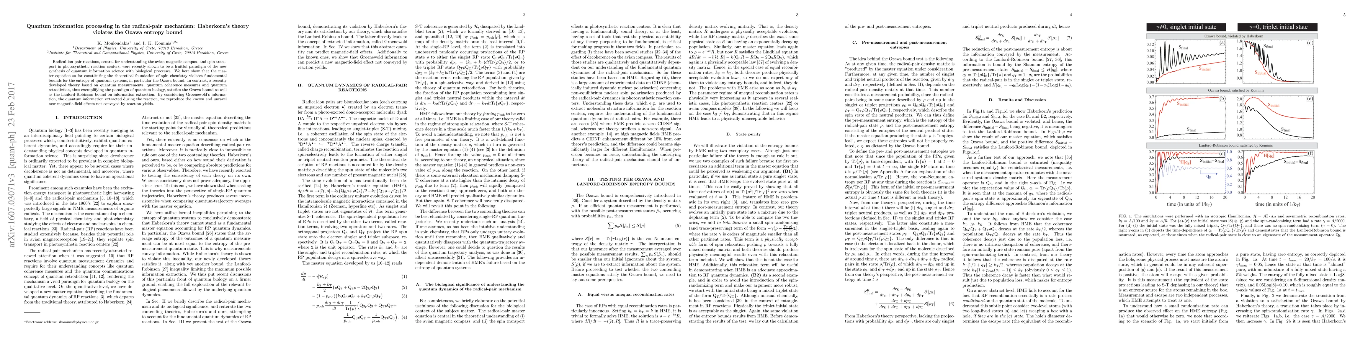 Radical-ion-pair reactions, central for understanding the avian magnetic compass and spin transport in photosynthetic reaction centers, were recently shown to be a fruitful paradigm of the new synthesis of quantum information science with biological processes. We show here that the master equation so far constituting the theoretical foundation of spin chemistry violates fundamental bounds for the entropy of quantum systems, in particular the Ozawa bound. In contrast, a recently developed theory based on quantum measurements, quantum coherence measures, and quantum retrodiction, thus exemplifying the paradigm of quantum biology, satisfies the Ozawa bound as well as the Lanford-Robinson bound on information extraction. By considering Groenewold information, the quantum information extracted during the reaction, we reproduce the known and unravel other magnetic-field effects not conveyed by reaction yields.