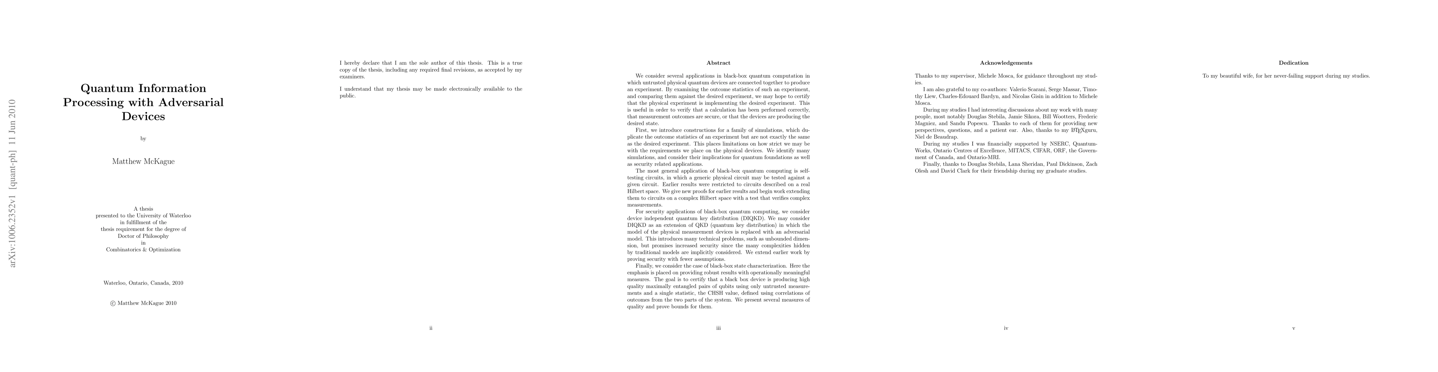 We consider several applications in black-box quantum computation in which untrusted physical quantum devices are connected together to produce an experiment. By examining the outcome statistics of such an experiment, and comparing them against the desired experiment, we may hope to certify that the physical experiment is implementing the desired experiment. This is useful in order to verify that a calculation has been performed correctly, that measurement outcomes are secure, or that the devices are producing the desired state.