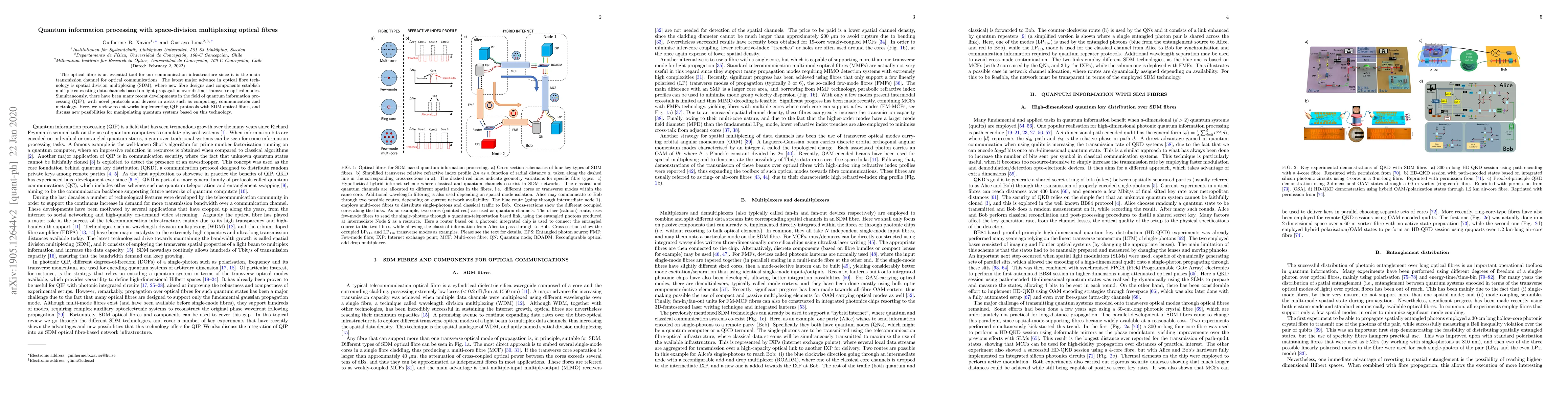 The optical fibre is an essential tool for our communication infrastructure since it is the main transmission channel for optical communications. The latest major advance in optical fibre technology is spatial division multiplexing (SDM), where new fibre designs and components establish multiple co-existing data channels based on light propagation over distinct transverse optical modes. Simultaneously, there have been many recent developments in the field of quantum information processing (QIP), with novel protocols and devices in areas such as computing, communication and metrology. Here, we review recent works implementing QIP protocols with SDM optical fibres, and discuss new possibilities for manipulating quantum systems based on this technology.