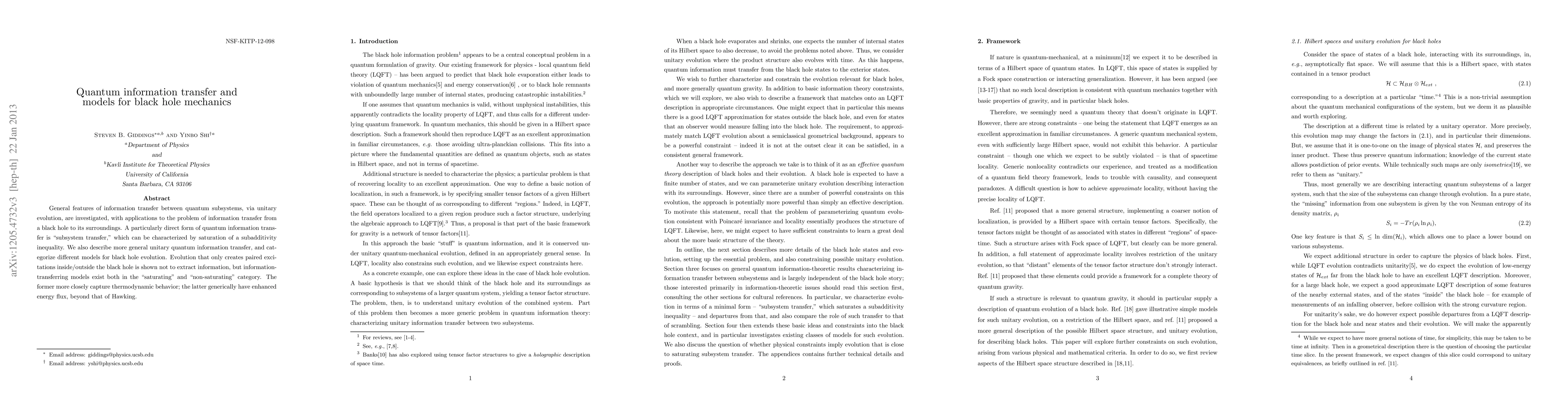 This paper explores quantum information transfer mechanisms, particularly "subspace transfer," and applies these insights to black hole mechanics. It identifies models that can extract information from black holes, distinguishing between those that follow thermodynamic behavior and those with enhanced energy flux.