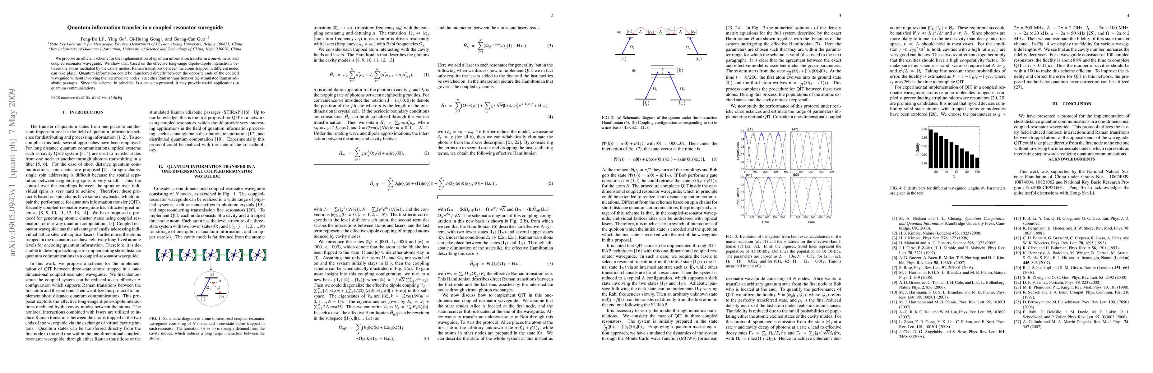 Researchers proposed a scheme for transferring quantum information through a one-dimensional coupled resonator waveguide without intermediate nodes, enabling direct transfer between opposite ends.