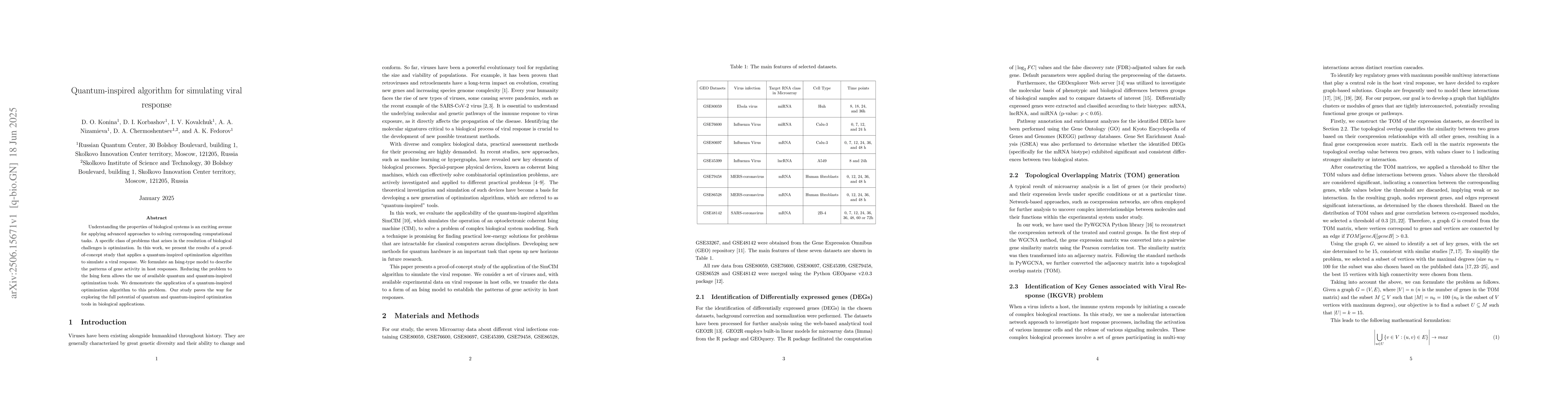 Understanding the properties of biological systems is an exciting avenue for applying advanced approaches to solving corresponding computational tasks. A specific class of problems that arises in the resolution of biological challenges is optimization. In this work, we present the results of a proof-of-concept study that applies a quantum-inspired optimization algorithm to simulate a viral response. We formulate an Ising-type model to describe the patterns of gene activity in host responses. Reducing the problem to the Ising form allows the use of available quantum and quantum-inspired optimization tools. We demonstrate the application of a quantum-inspired optimization algorithm to this problem. Our study paves the way for exploring the full potential of quantum and quantum-inspired optimization tools in biological applications.