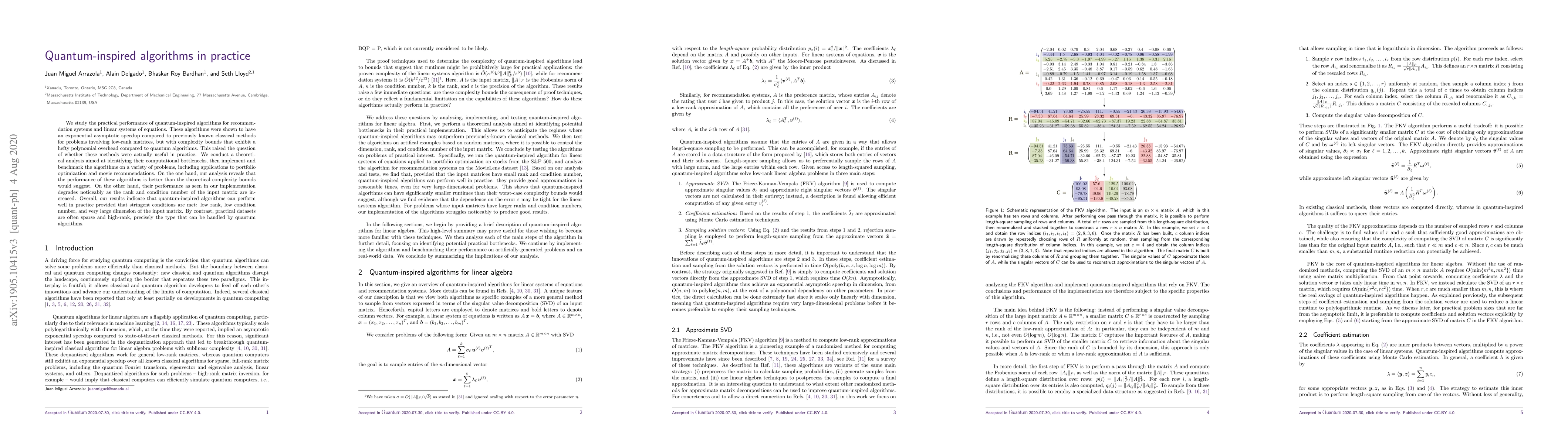 This paper evaluates the practical performance of quantum-inspired algorithms for recommendation systems and linear equations, finding they outperform theoretical complexity bounds but struggle with high-rank and high-condition matrices, suggesting they are best suited for low-rank, low-condition, and large-dimension datasets.
