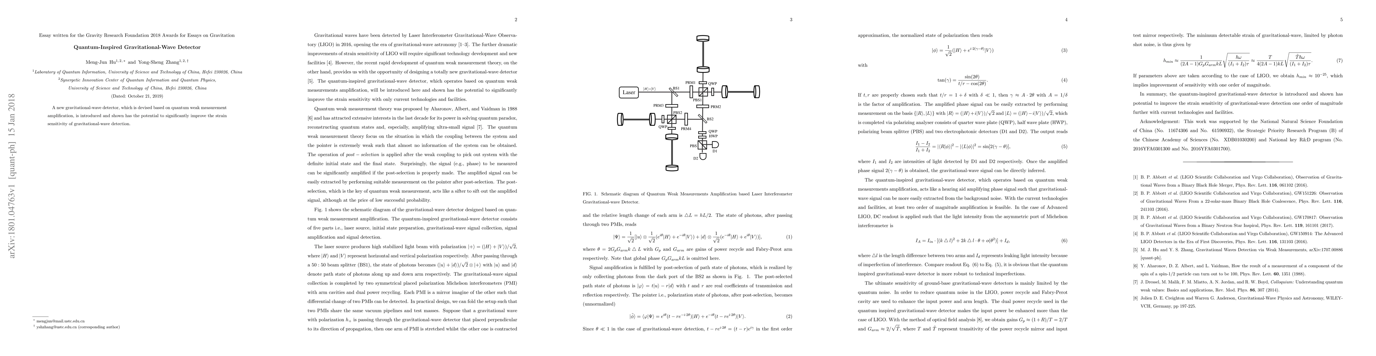 A new gravitational-wave detector, which is devised based on quantum weak measurement amplification, is introduced and shown has the potential to significantly improve the strain sensitivity of gravitational-wave detection.