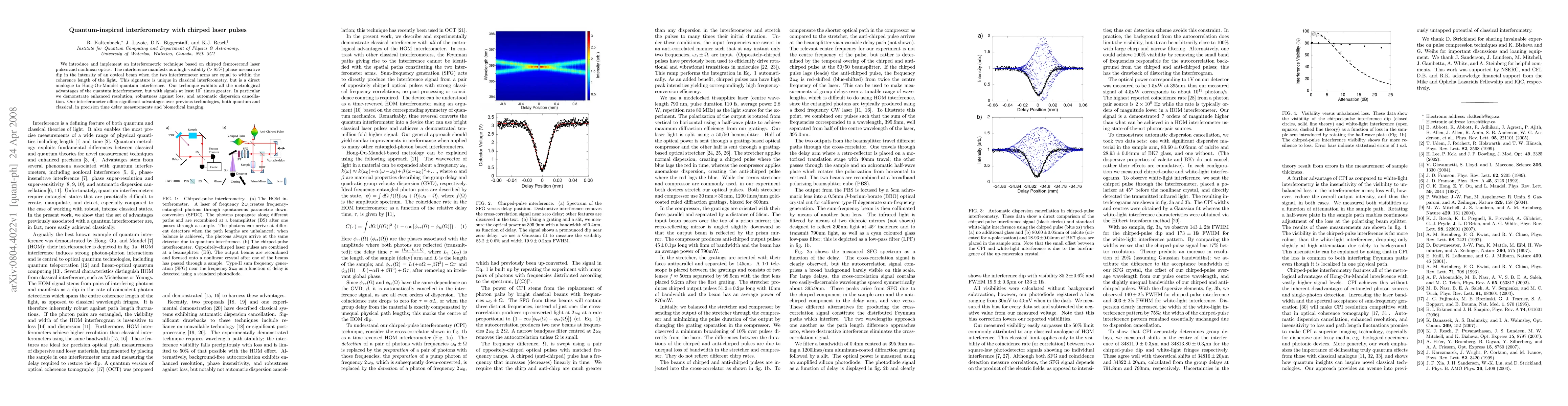 This paper presents a quantum-inspired interferometry technique using chirped femtosecond laser pulses, achieving high-visibility phase-insensitive dips analogous to quantum Hong-Ou-Mandel interference, with enhanced resolution, robustness, and automatic dispersion cancellation, offering significant improvements over both classical and quantum interferometry for precision measurements and biomedical imaging.