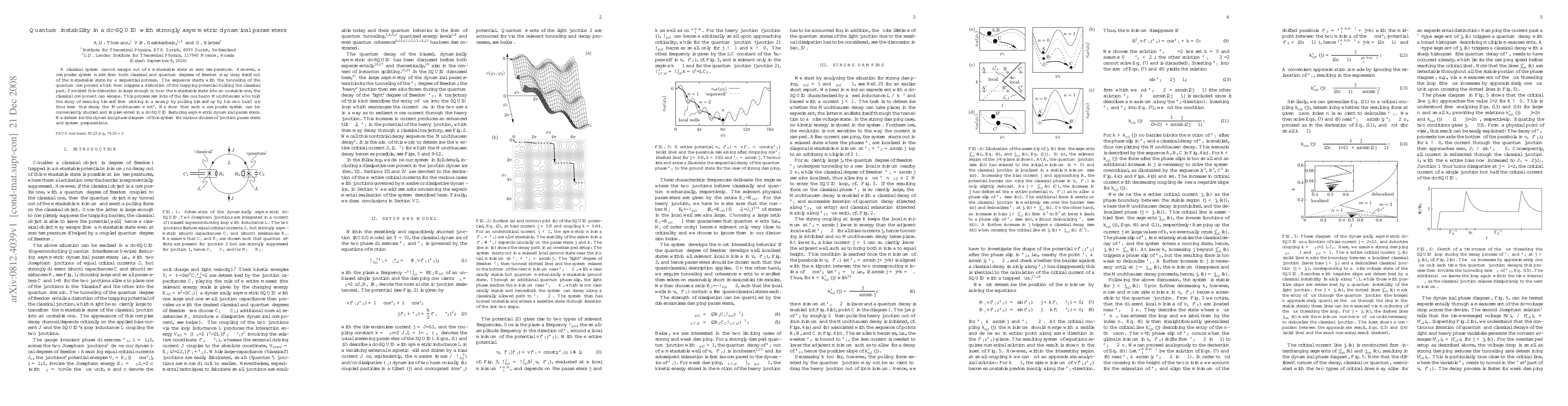 This paper explores quantum instability in a dc-SQUID with asymmetric parameters, demonstrating how a quantum component can trigger a classical component's escape from a metastable state through a process termed the 'Muenchhausen effect'. The study determines the dynamical phase diagram for various junction parameters and system preparations.