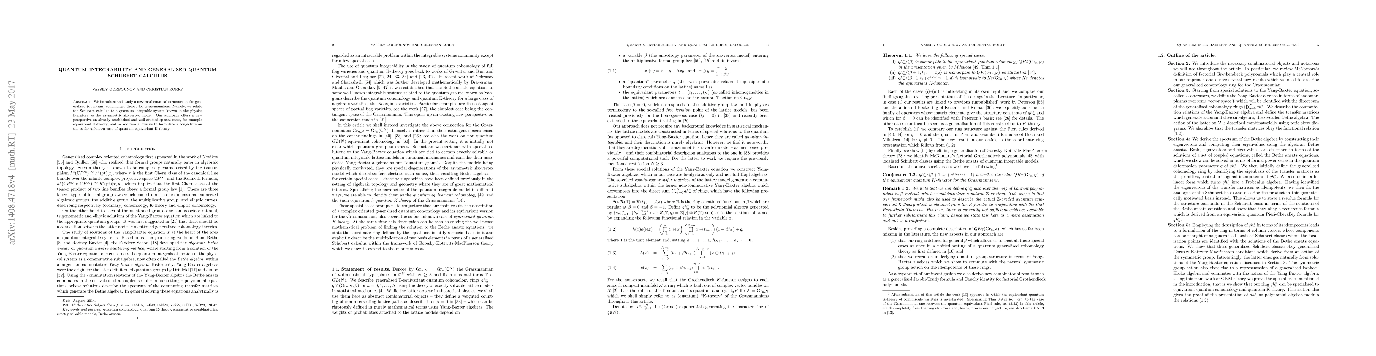 We introduce and study a new mathematical structure in the generalised (quantum) cohomology theory for Grassmannians. Namely, we relate the Schubert calculus to a quantum integrable system known in the physics literature as the asymmetric six-vertex model. Our approach offers a new perspective on already established and well-studied special cases, for example equivariant K-theory, and in addition allows us to formulate a conjecture on the so-far unknown case of quantum equivariant K-theory.