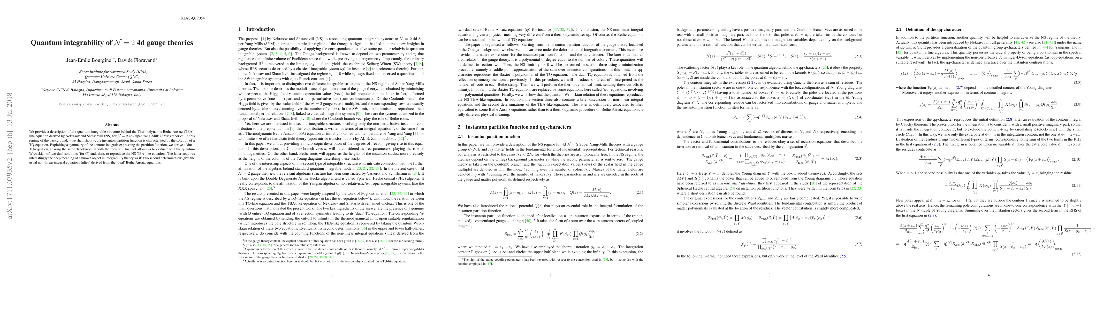 We provide a description of the quantum integrable structure behind the Thermodynamic Bethe Ansatz (TBA)-like equation derived by Nekrasov and Shatashvili (NS) for $\mathcal{N}=2$ 4d Super Yang-Mills (SYM) theories. In this regime of the background, -- we shall show --, the instanton partition function is characterised by the solution of a TQ-equation. Exploiting a symmetry of the contour integrals expressing the partition function, we derive a 'dual' TQ-equation, sharing the same T-polynomial with the former. This fact allows us to evaluate to $1$ the quantum Wronskian of two dual solutions (for $Q$) and, then, to reproduce the NS TBA-like equation. The latter acquires interestingly the deep meaning of a known object in integrability theory, as its two second determinations give the usual non-linear integral equations (nlies) derived from the 'dual' Bethe Ansatz equations.