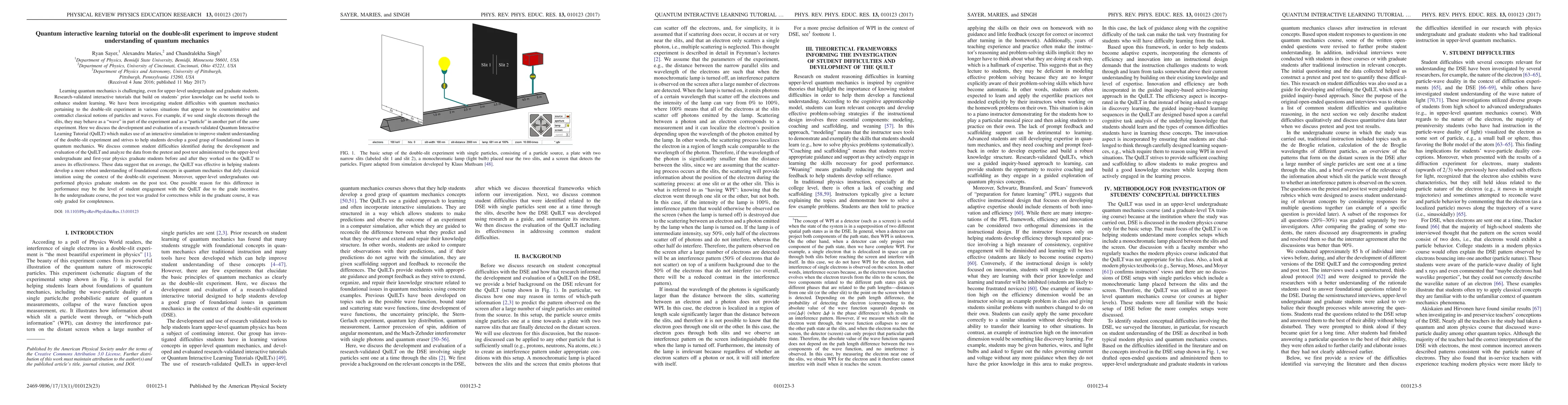 This research developed a Quantum Interactive Learning Tutorial (QuILT) to enhance student understanding of quantum mechanics, specifically the double-slit experiment. The QuILT was effective in improving foundational concepts, with upper-level undergraduates showing better post-test performance than first-year physics graduate students, possibly due to higher engagement from the grade incentive.