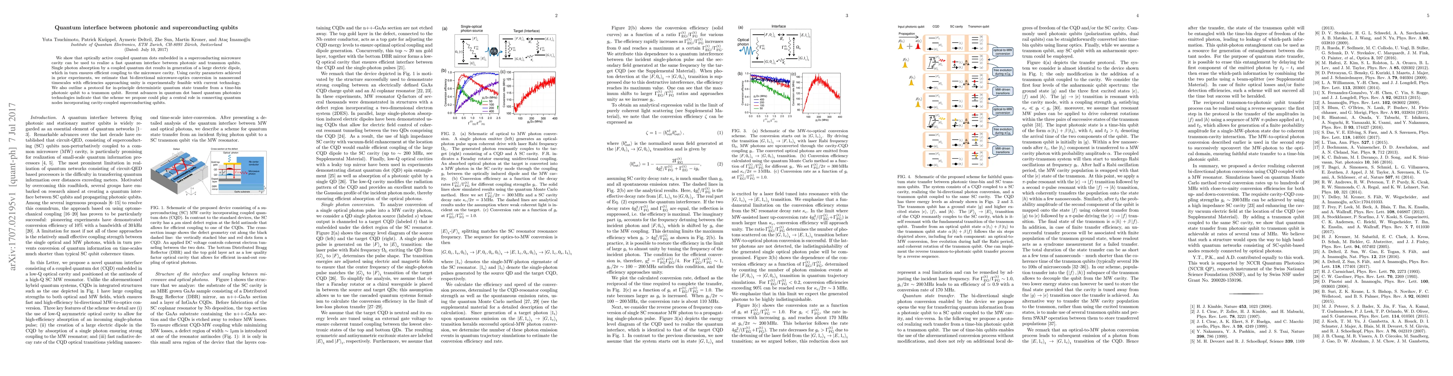 This paper proposes a quantum interface using optically active coupled quantum dots in a superconducting microwave cavity to efficiently convert photonic to microwave qubits in nanosecond timescales. The scheme outlines a protocol for deterministic quantum state transfer, suggesting its potential to connect quantum nodes with cavity-coupled superconducting qubits.