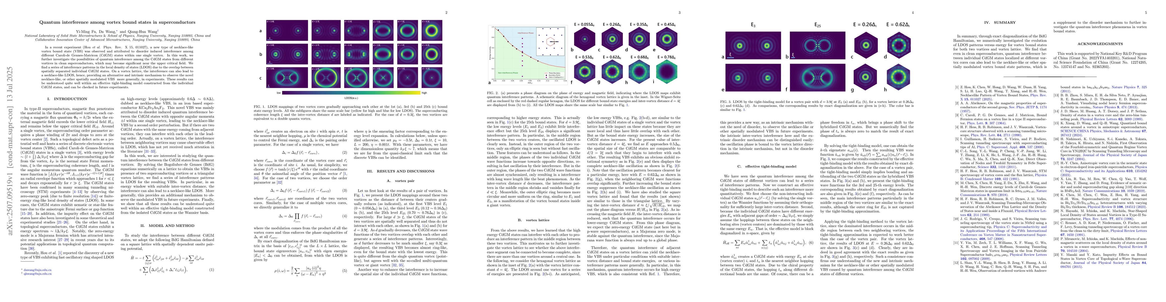 In a recent experiment (Hou et al Phys. Rev. X 15, 011027), a new type of necklace-like vortex bound state (VBS) was observed and attributed to disorder induced interference among different Caroli-de Gennes-Matricon (CdGM) states within one single vortex. In this work, we further investigate the possibilities of quantum interference among the CdGM states from different vortices in clean superconductors, which may become significant near the upper critical field. We find a series of interference patterns in the local density of states (LDOS) due to the overlap between spatially separated individual CdGM states. On a vortex lattice, the interference can also lead to a necklace-like LDOS, hence, providing an alternative and intrinsic mechanism to observe the novel necklace-like, or other spatially modulated VBS more generally, in experiments. These results can be understood quite well within an effective tight-binding model constructed from the individual CdGM states, and can be checked in future experiments.