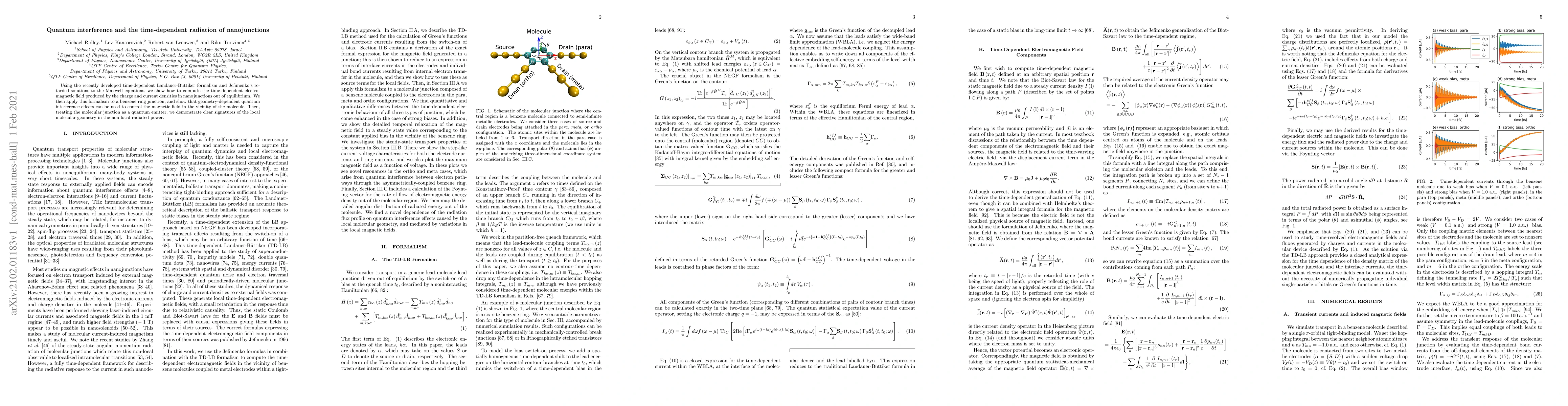 Researchers developed a method to compute time-dependent electromagnetic fields in nanojunctions using quantum interference effects, allowing for control over magnetic fields near molecules and signatures of local geometry in radiated power.