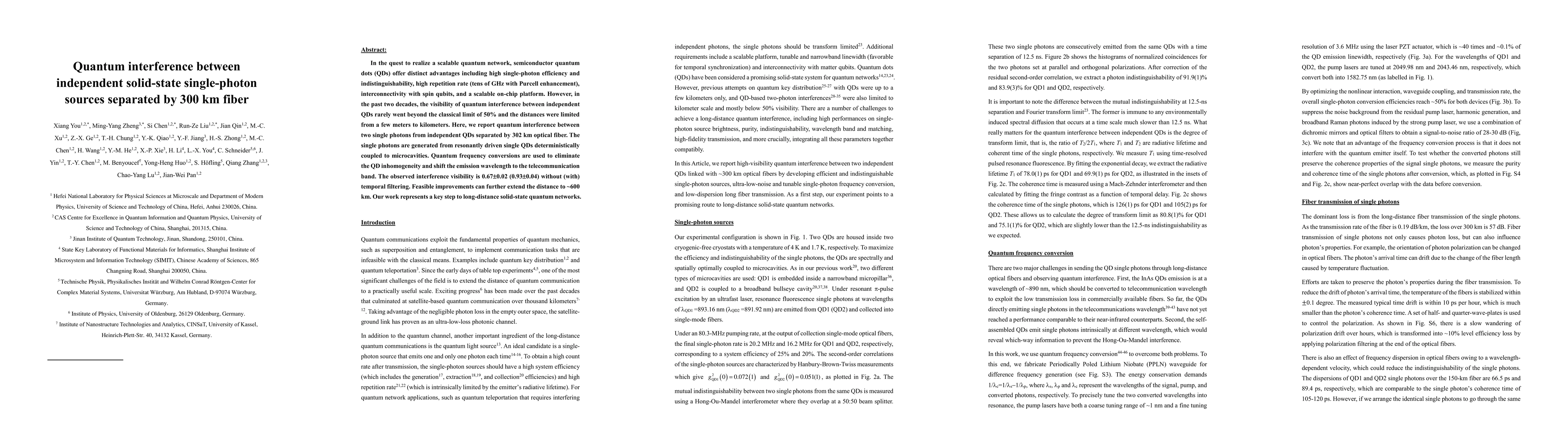 This paper reports quantum interference between single photons from independent semiconductor quantum dots separated by 302 km of optical fiber, achieving an interference visibility of 0.67±0.02, a significant advancement towards scalable quantum networks. Improvements could extend the distance to 600 km.