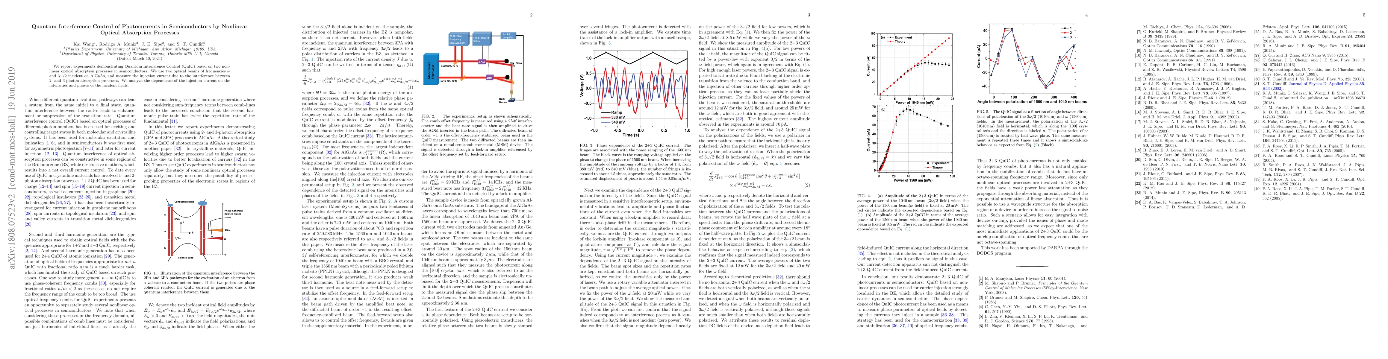 This paper demonstrates Quantum Interference Control (QuIC) in semiconductors via nonlinear optical absorption processes, showing how interference between 2- and 3-photon absorption affects photocurrents. The study measures the injection current in AlGaAs under different optical beam intensities and phases.