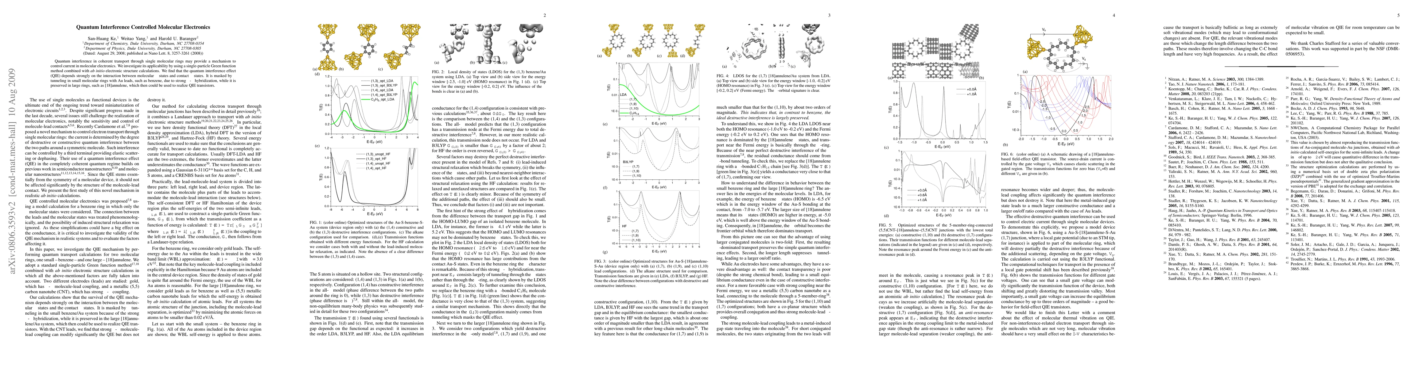 This paper explores quantum interference effects in molecular electronics, demonstrating that quantum interference depends on the interaction between pi and sigma states. While small rings like benzene show no interference due to pi-sigma hybridization, larger rings like [18]annulene maintain this effect, suggesting potential for QIE-based transistors.