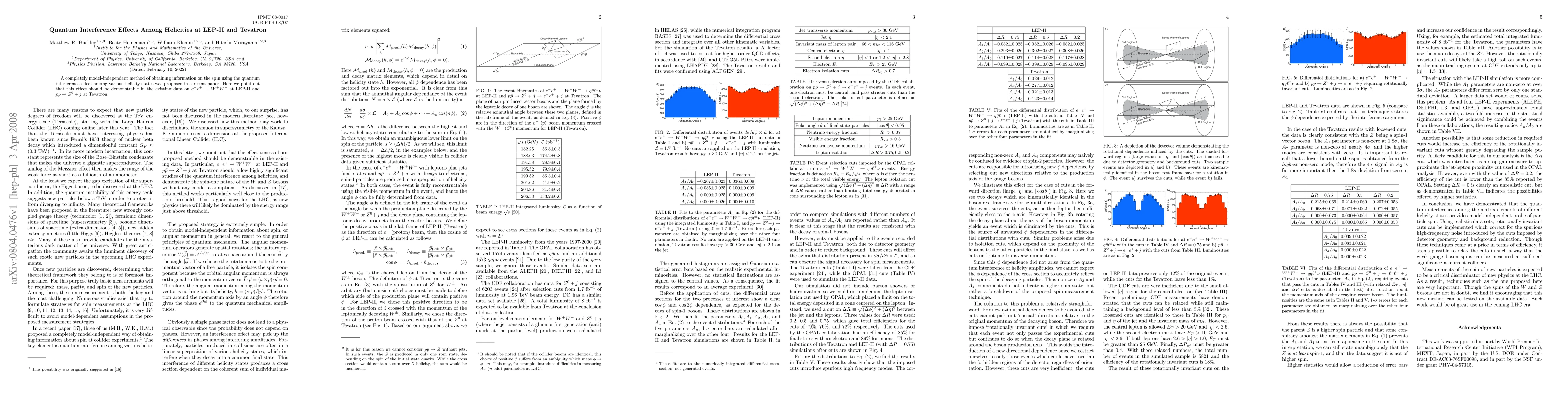 A completely model-independent method of obtaining information on the spin using the quantum interference effect among various helicity states was proposed in a recent paper. Here we point out that this effect should be demonstrable in the existing data on e^-e^+ \to W^+ W^- at LEP-II and p \bar{p} \to Z^0 + j at Tevatron.