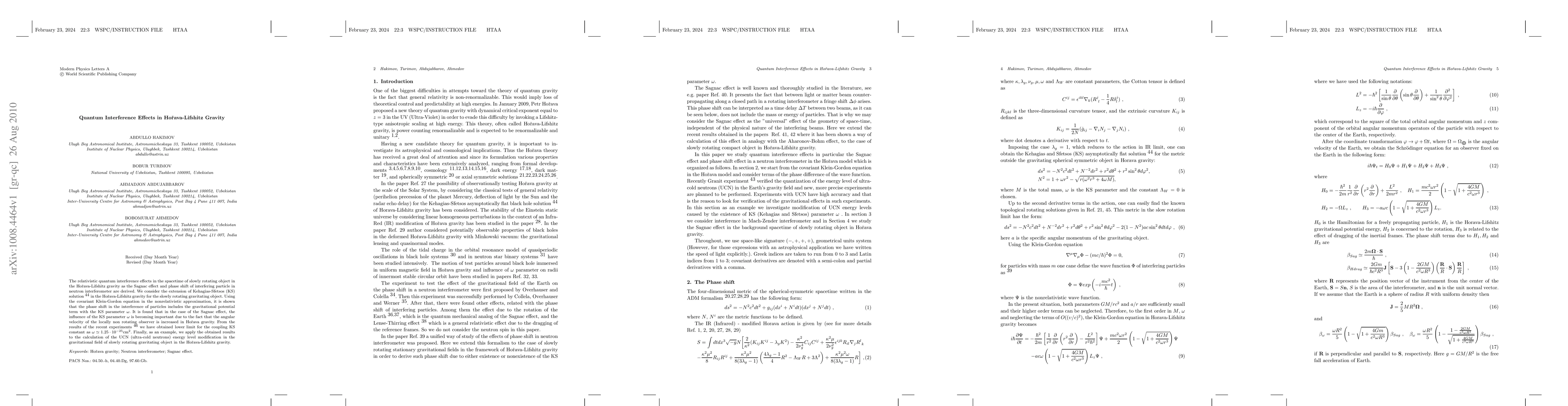 The relativistic quantum interference effects in the spacetime of slowly rotating object in the Ho\v{r}ava-Lifshitz gravity as the Sagnac effect and phase shift of interfering particle in neutron interferometer are derived. We consider the extension of Kehagias-Sfetsos (KS) solution~\cite{ks09} in the Ho\v{r}ava-Lifshitz gravity for the slowly rotating gravitating object. Using the covariant Klein-Gordon equation in the nonrelativistic approximation, it is shown that the phase shift in the interference of particles includes the gravitational potential term with the KS parameter $\omega$. It is found that in the case of the Sagnac effect, the influence of the KS parameter $\omega$ is becoming important due to the fact that the angular velocity of the locally non rotating observer is increased in Ho\v{r}ava gravity. From the results of the recent experiments~\cite{holgeretal} we have obtained lower limit for the coupling KS constant as $\omega \simeq 1.25 \cdot 10^{-25} \rm{cm}^{2}$. Finally, as an example, we apply the obtained results to the calculation of the UCN (ultra-cold neutrons) energy level modification in the gravitational field of slowly rotating gravitating object in the Ho\v{r}ava-Lifshitz gravity.