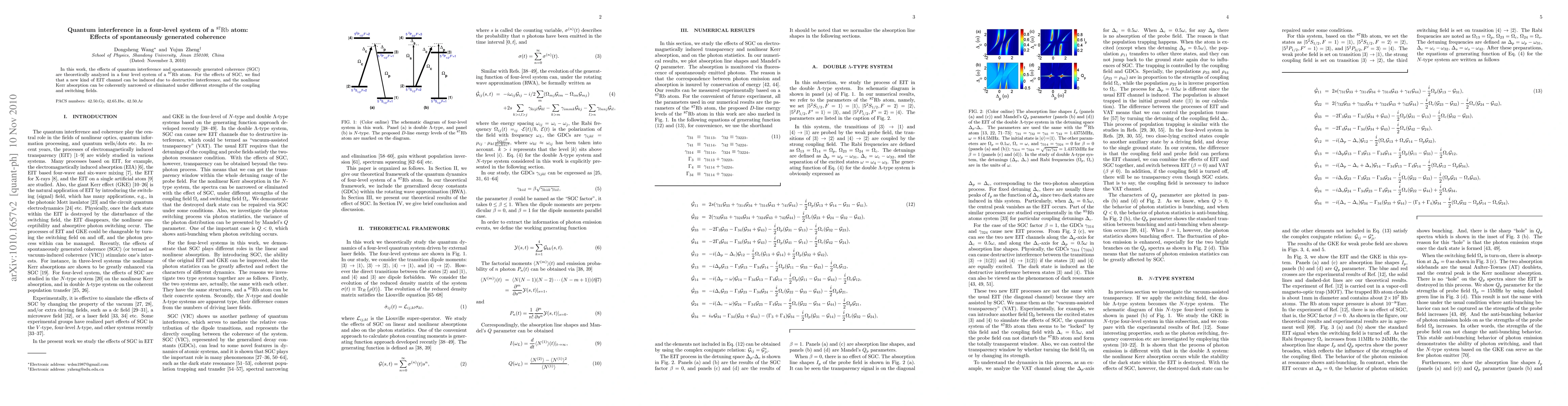 This paper theoretically analyzes quantum interference and spontaneously generated coherence in a four-level $^{87}\mathrm{Rb}$ atom system, revealing that SGC can induce a new EIT channel and coherently narrow or eliminate nonlinear Kerr absorption.