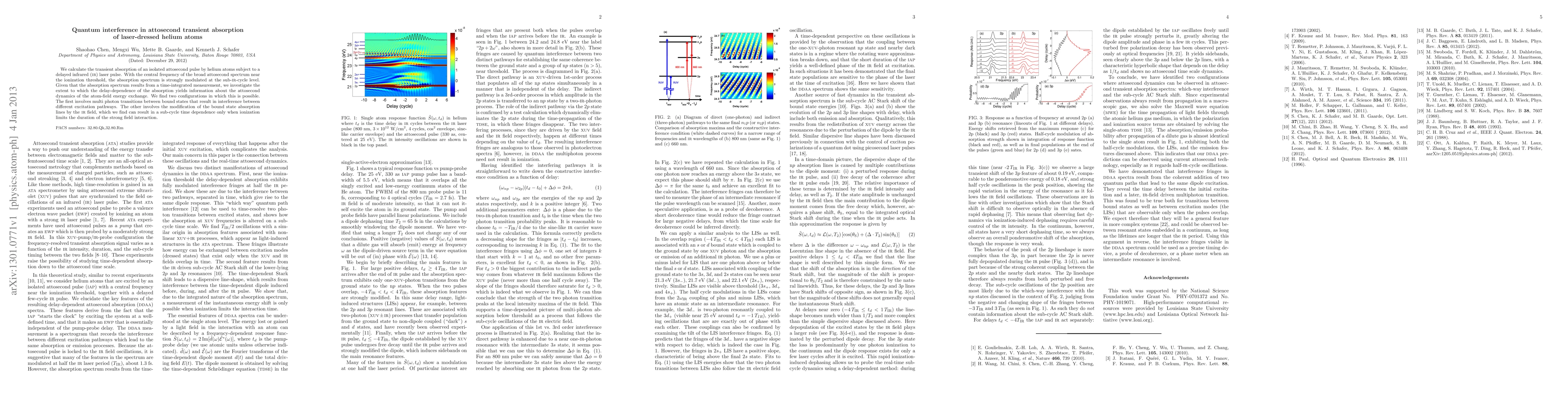 The paper presents a detailed analysis of quantum interference in attosecond transient absorption of laser-dressed helium atoms, identifying two configurations where delay-dependent absorption yields information about attosecond dynamics.