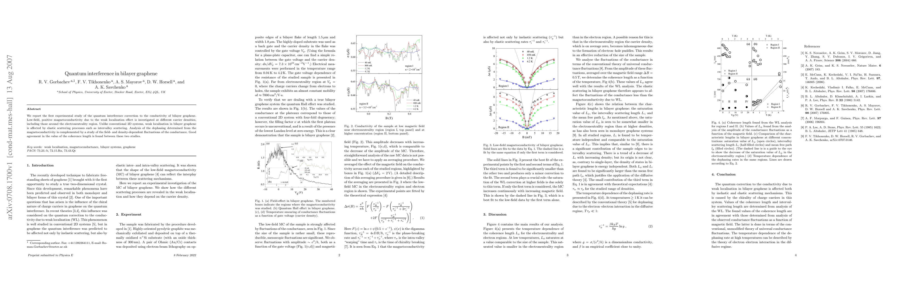 This paper investigates quantum interference effects in bilayer graphene, focusing on low-field magnetoconductivity due to weak localisation. The study reveals unique elastic scattering influences, particularly intervalley scattering, and provides coherence length analysis through both magnetoconductivity and conductance fluctuation studies, finding consistent results.