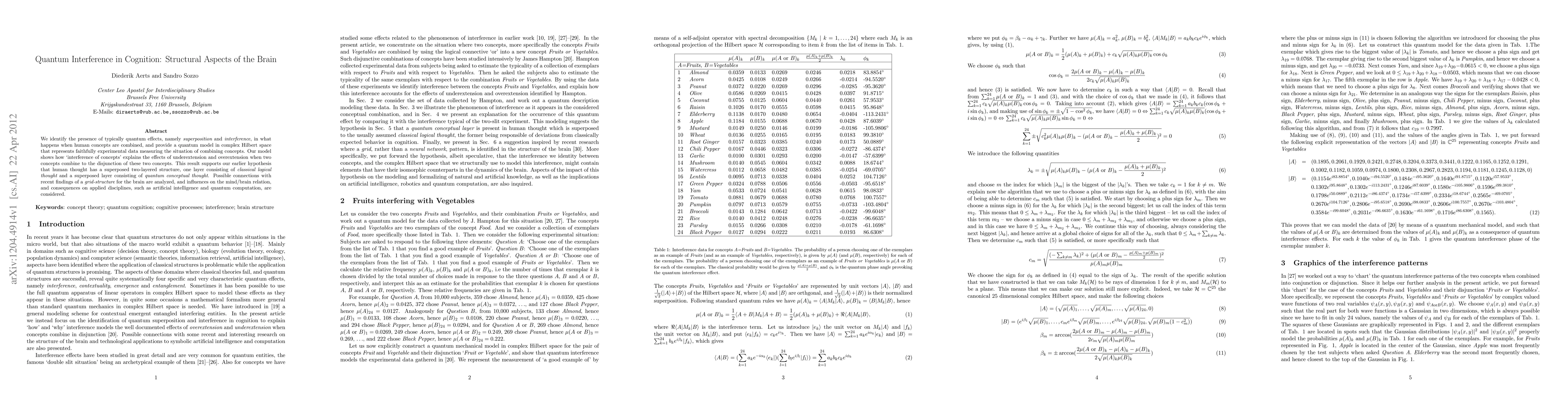 This paper proposes a quantum model to explain cognitive interference when human concepts combine, demonstrating superposition and interference effects. It suggests a dual-layered structure of human thought, with classical and quantum conceptual layers, and explores implications for artificial intelligence and quantum computation.