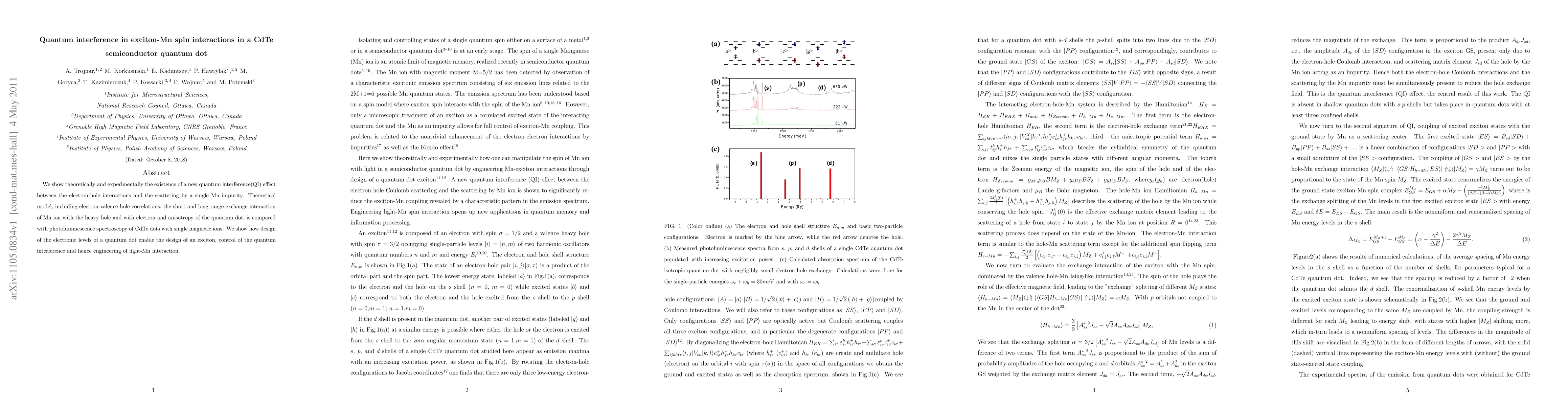 We show theoretically and experimentally the existence of a new quantum interference(QI) effect between the electron-hole interactions and the scattering by a single Mn impurity. Theoretical model, including electron-valence hole correlations, the short and long range exchange interaction of Mn ion with the heavy hole and with electron and anisotropy of the quantum dot, is compared with photoluminescence spectroscopy of CdTe dots with single magnetic ions. We show how design of the electronic levels of a quantum dot enable the design of an exciton, control of the quantum interference and hence engineering of light-Mn interaction.