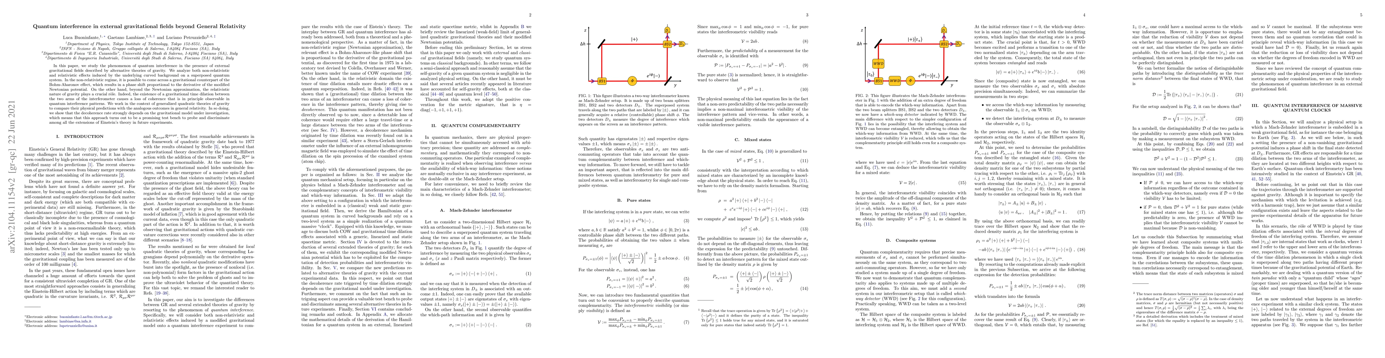 This paper investigates quantum interference effects in external gravitational fields using alternative gravity theories, revealing non-relativistic phase shifts akin to the Bohm-Aharonov effect and relativistic coherence loss due to gravitational time dilation. It proposes a method to distinguish between different gravity models through their impact on quantum interference patterns.