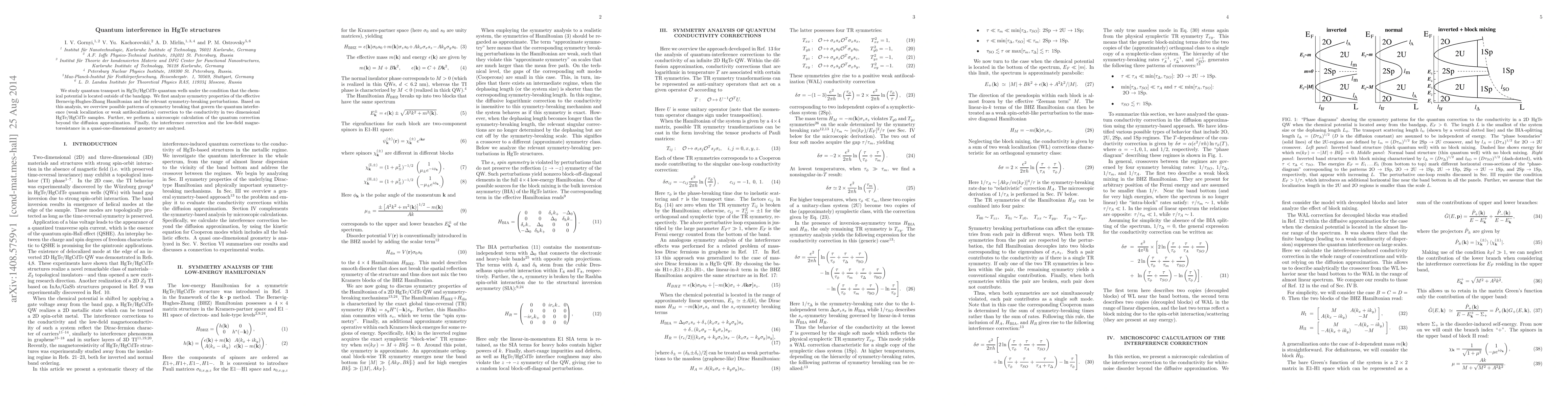 This paper investigates quantum transport in HgTe/HgCdTe quantum wells with the chemical potential outside the bandgap, focusing on symmetry properties and quantum interference effects. It concludes with a microscopic calculation of quantum correction and analysis of interference correction and low-field magnetoresistance in a quasi-one-dimensional geometry.