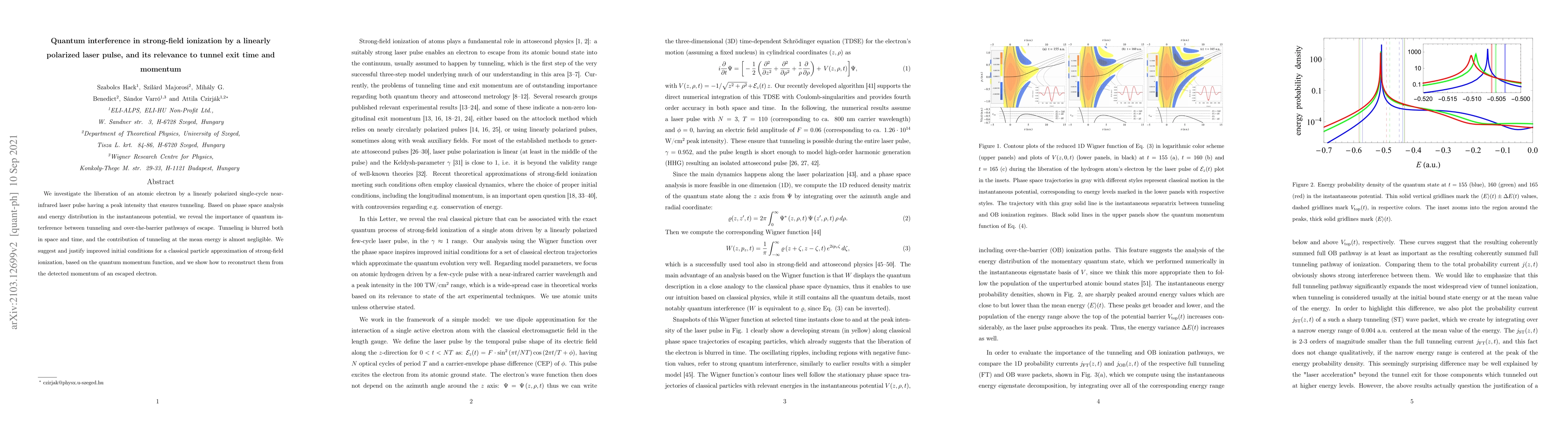 Research investigates quantum interference in strong-field ionization of atoms by a laser pulse, revealing its impact on tunnel exit time and momentum, with implications for improved initial conditions for classical particle approximation.