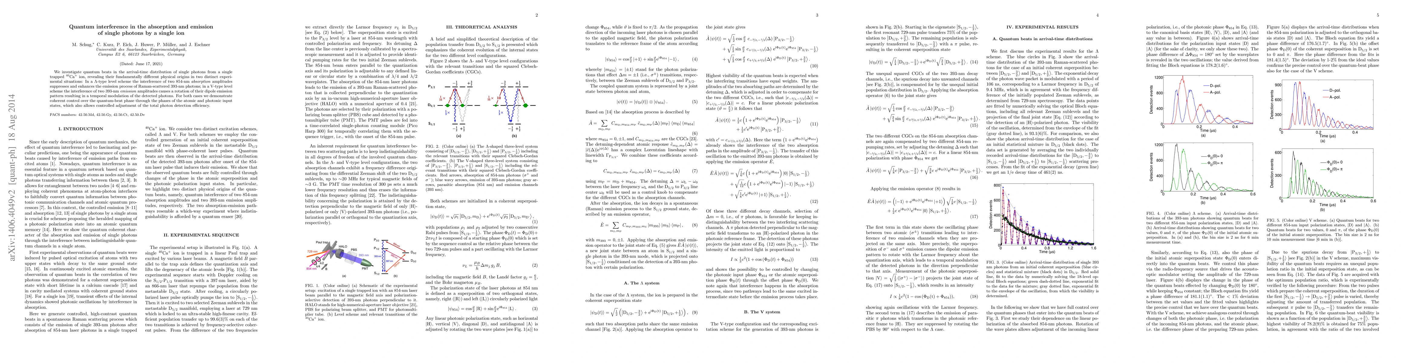 Researchers observed quantum beats in single photons emitted by a trapped ion, showing different effects in two level schemes, and achieved coherent control over the phase of these beats.