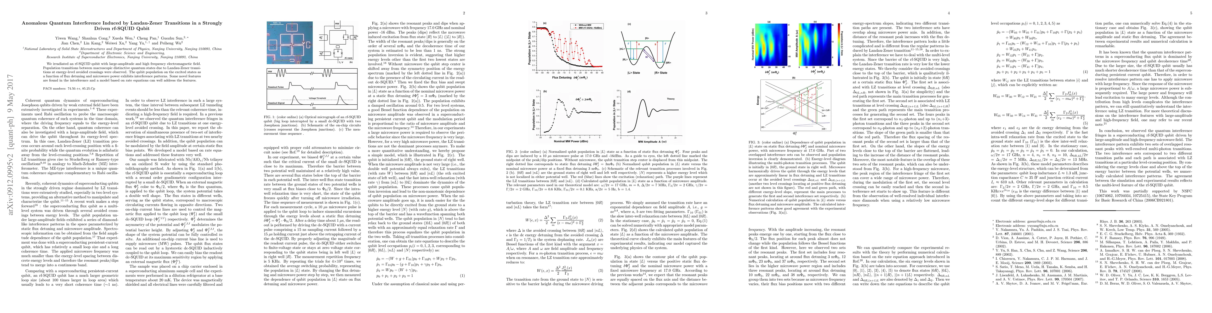 This study investigates quantum interference in a strongly driven rf-SQUID qubit subjected to large-amplitude, high-frequency electromagnetic fields, revealing Landau-Zener transitions and interference patterns in qubit population. A rate equation model effectively explains the observed novel interference features.