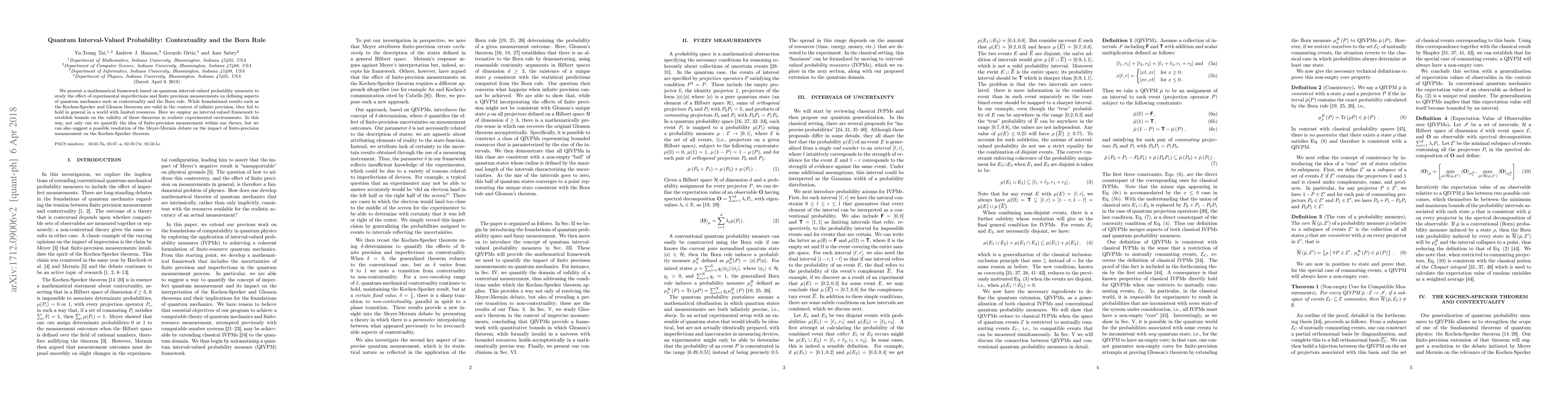 We present a mathematical framework based on quantum interval-valued probability measures to study the effect of experimental imperfections and finite precision measurements on defining aspects of quantum mechanics such as contextuality and the Born rule. While foundational results such as the Kochen-Specker and Gleason theorems are valid in the context of infinite precision, they fail to hold in general in a world with limited resources. Here we employ an interval-valued framework to establish bounds on the validity of those theorems in realistic experimental environments. In this way, not only can we quantify the idea of finite-precision measurement within our theory, but we can also suggest a possible resolution of the Meyer-Mermin debate on the impact of finite-precision measurement on the Kochen-Specker theorem.