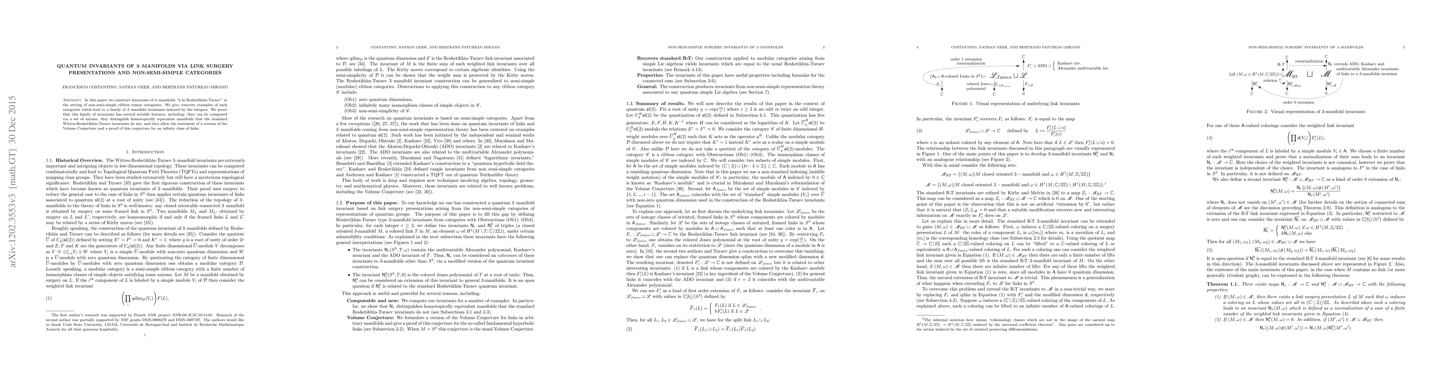 In this paper we construct invariants of 3-manifolds "\`a la Reshetikhin-Turaev" in the setting of non-semi-simple ribbon tensor categories. We give concrete examples of such categories which lead to a family of 3-manifold invariants indexed by the integers. We prove this family of invariants has several notable features, including: they can be computed via a set of axioms, they distinguish homotopically equivalent manifolds that the standard Reshetikhin-Turaev-Witten invariants do not, and they allow the statement of a version of the Volume Conjecture and a proof of this conjecture for an infinite class of links.