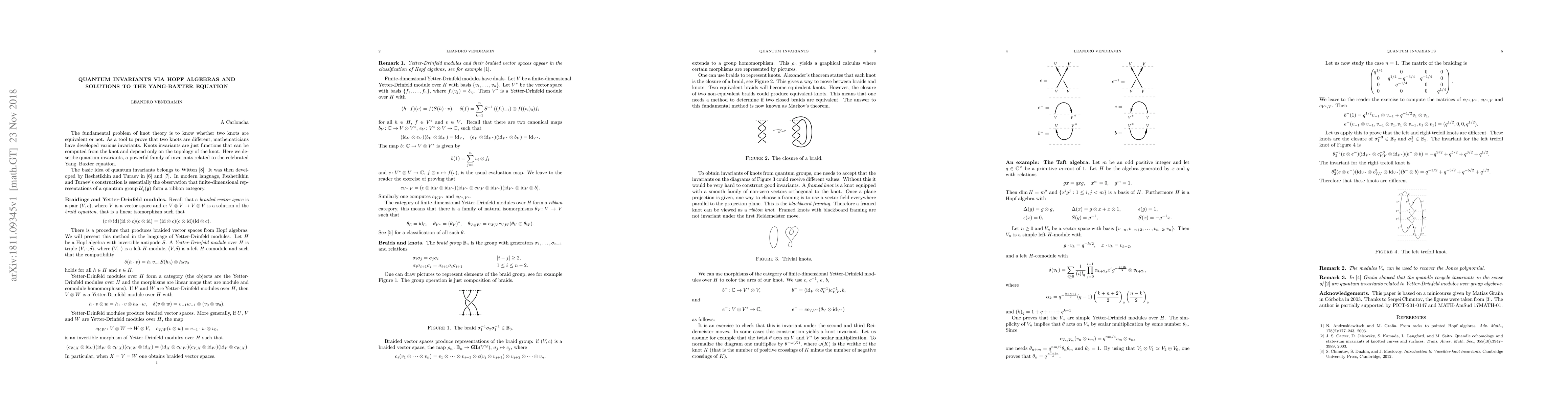 The fundamental problem of knot theory is to know whether two knots are equivalent or not. As a tool to prove that two knots are different, mathematicians have developed various invariants. Knots invariants are just functions that can be computed from the knot and depend only on the topology of the knot. Here we describe quantum invariants, a powerful family of invariants related to the celebrated Yang-Baxter equation.