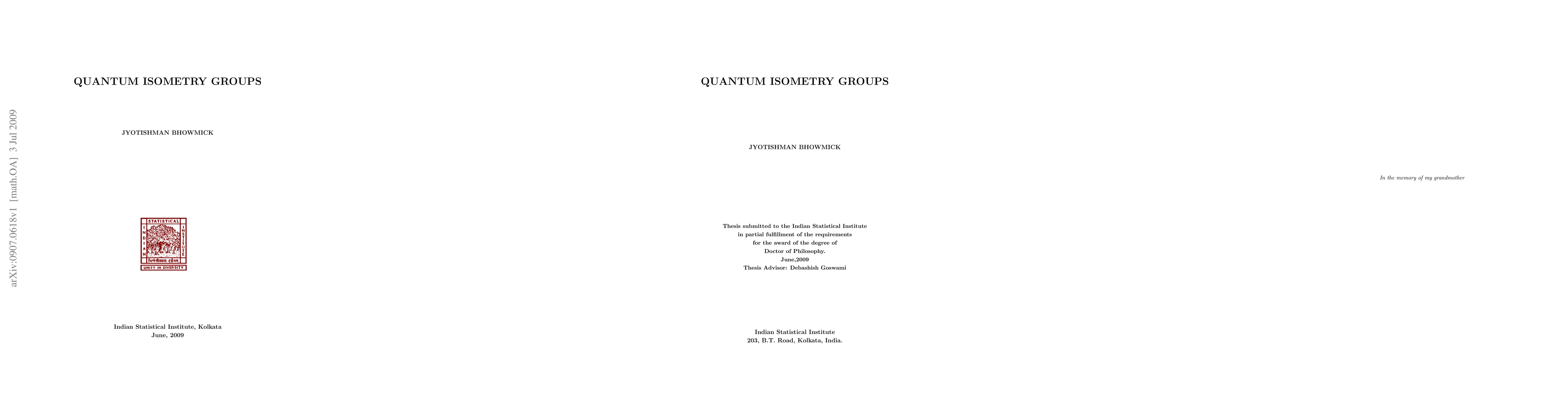 Summary: This thesis formulates and computes quantum isometry groups, exploring the mathematical structure underpinning transformations in quantum mechanics. The focus is on understanding how these groups maintain the integrity of quantum states during transformations.