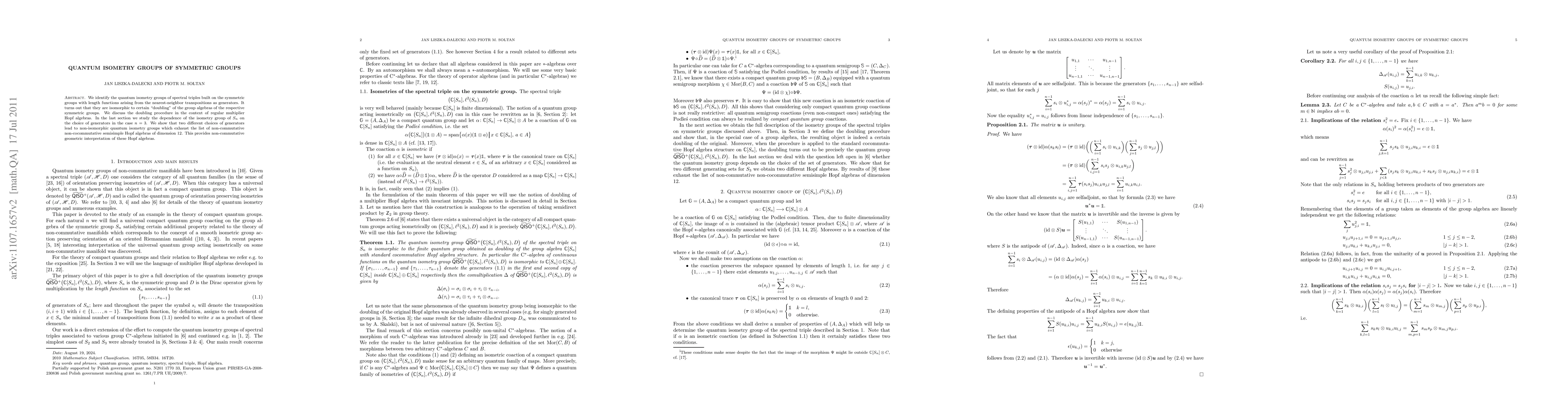 We identify the quantum isometry groups of spectral triples built on the symmetric groups with length functions arising from the nearest-neighbor transpositions as generators. It turns out that they are isomorphic to certain "doubling" of the group algebras of the respective symmetric groups. We discuss the doubling procedure in the context of regular multiplier Hopf algebras. In the last section we study the dependence of the isometry group of S_n on the choice of generators in the case n=3. We show that two different choices of generators lead to non-isomorphic quantum isometry groups which exhaust the list of non-commutative non-cocommutative semisimple Hopf algebras of dimension 12. This provides non-commutative geometric interpretation of these Hopf algebras.