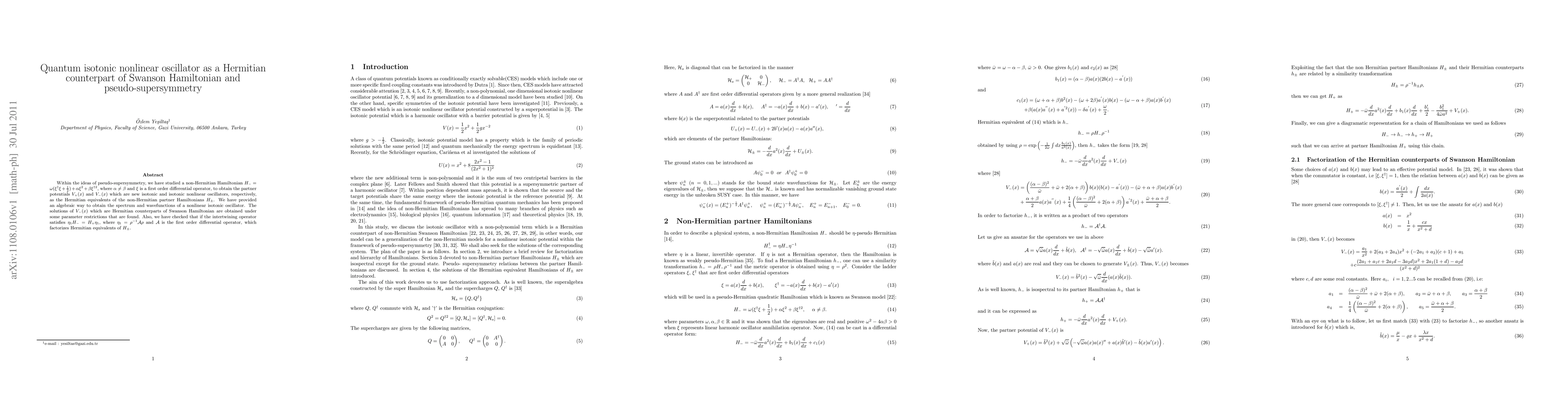 Within the ideas of pseudo-supersymmetry, we have studied a non-Hermitian Hamiltonian $H_{-}=\omega(\xi^{\dag} \xi+\1/2)+\alpha \xi^{2}+\beta \xi^{\dag 2}$, where $\alpha \neq \beta$ and $\xi$ is a first order differential operator, to obtain the partner potentials $V_{+}(x)$ and $V_{-}(x)$ which are new isotonic and isotonic nonlinear oscillators, respectively, as the Hermitian equivalents of the non-Hermitian partner Hamiltonians $H_{\pm}$. We have provided an algebraic way to obtain the spectrum and wavefunctions of a nonlinear isotonic oscillator. The solutions of $V_{-}(x)$ which are Hermitian counterparts of Swanson Hamiltonian are obtained under some parameter restrictions that are found. Also, we have checked that if the intertwining operator satisfies $\eta_{1} H_{-}=H_{+} \eta_{1}$, where $\eta_{1}=\rho^{-1} \mathcal{A} \rho$ and $\mathcal{A}$ is the first order differential operator, which factorizes Hermitian equivalents of $H_{\pm}$.