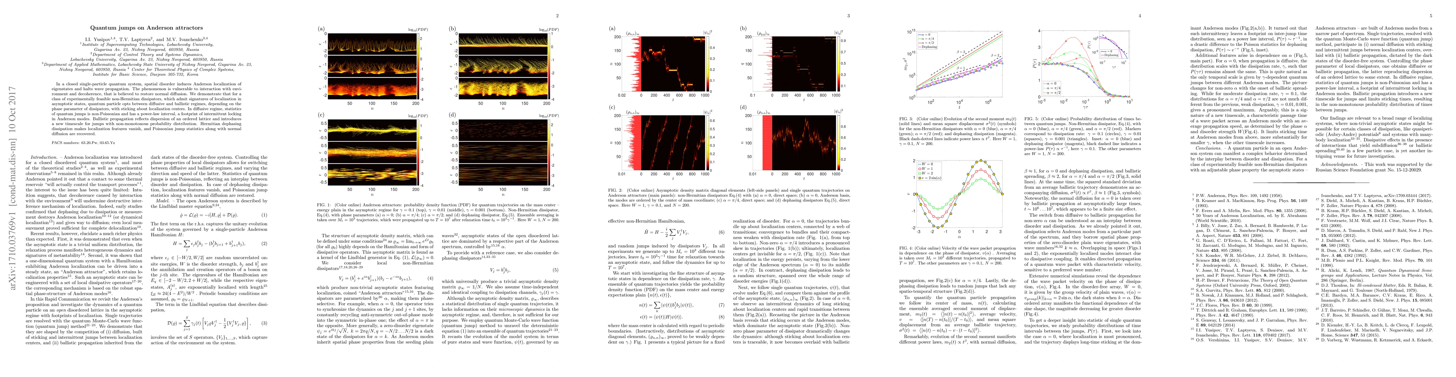 This study investigates quantum particle behavior in disordered systems, revealing a switch between diffusive and ballistic regimes influenced by non-Hermitian dissipators, with quantum jumps exhibiting non-Poissonian statistics. Hermitian dephasing restores normal diffusion, erasing localization features.