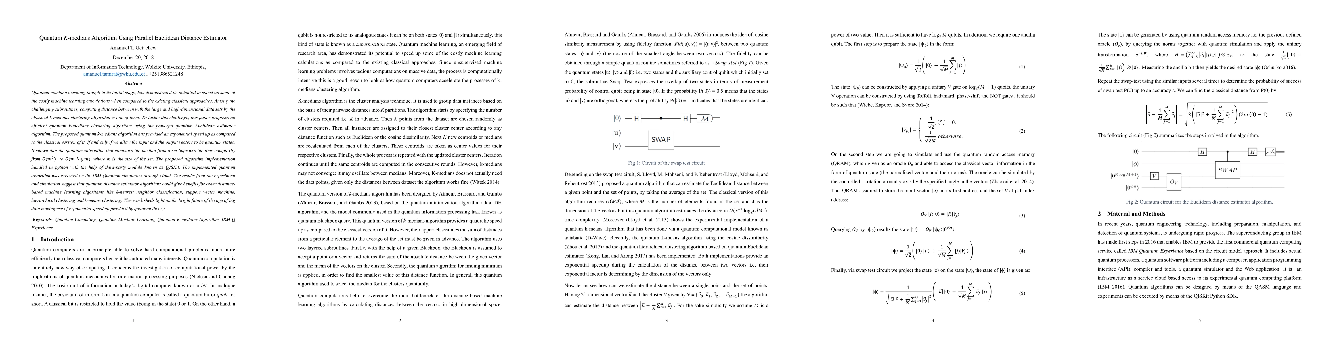 This paper proposes a quantum k-medians algorithm leveraging a quantum Euclidean distance estimator for large, high-dimensional datasets, achieving exponential speed-up over classical methods. Experiments using IBM Quantum simulators suggest potential benefits for other distance-based machine learning algorithms.