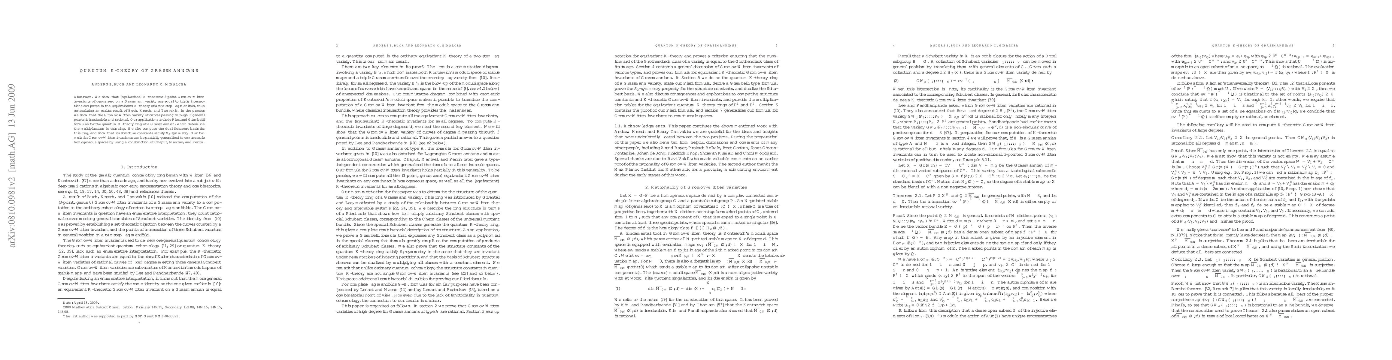 Researchers found that Gromov-Witten invariants for curves on Grassmannians can be calculated using ordinary K-theory of two-step flag manifolds, generalizing an earlier result.