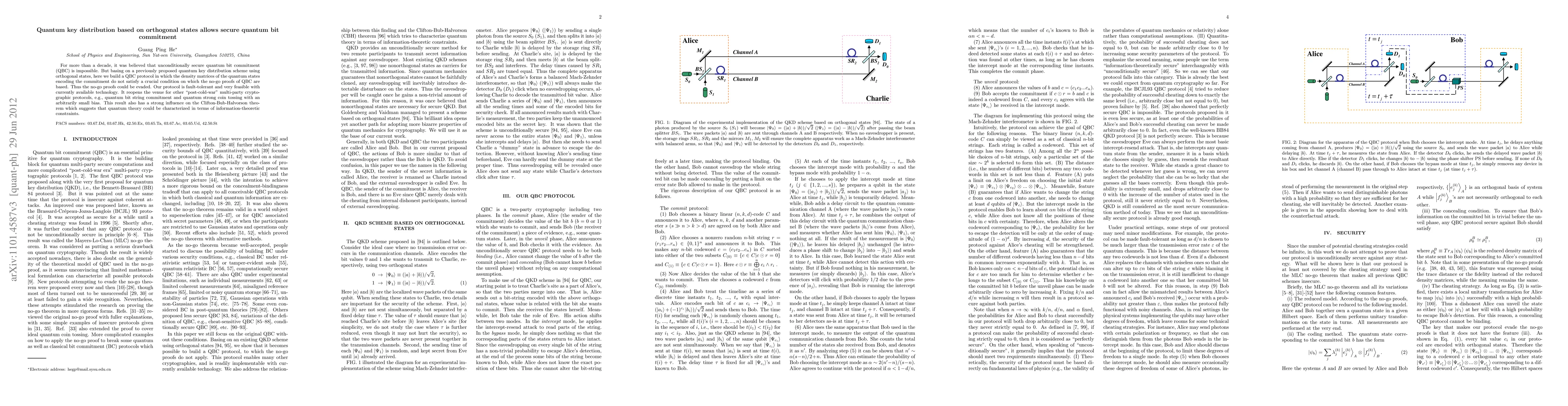 This research proposes a new quantum key distribution scheme that enables secure quantum bit commitment, challenging previous beliefs that such security was unattainable. The protocol utilizes orthogonal states to bypass existing no-go proofs, offering a feasible and fault-tolerant solution that could revive multi-party cryptographic protocols.