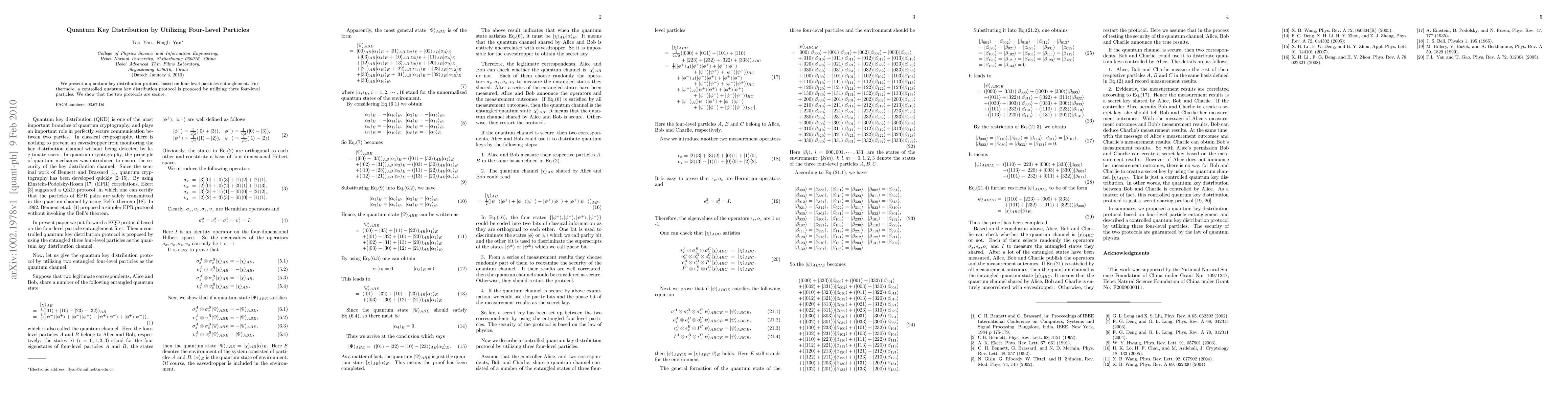 Researchers developed a quantum key distribution protocol using four-level particles, showing two protocols are secure, offering potential for secure data transmission.