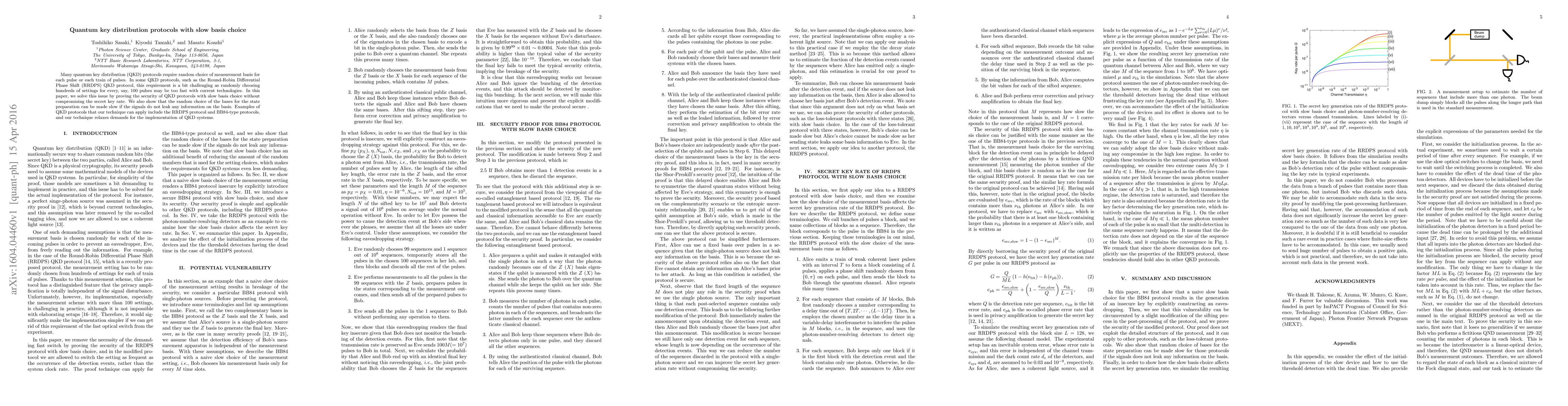 This paper addresses the challenge of implementing fast basis choice in quantum key distribution protocols, particularly in the Round-Robin Differential Phase Shift protocol, by demonstrating the security of protocols that allow slower basis selection without reducing the secret key rate. The authors show that slow basis choice can be feasible if basis information is not leaked, thus easing implementation demands.
