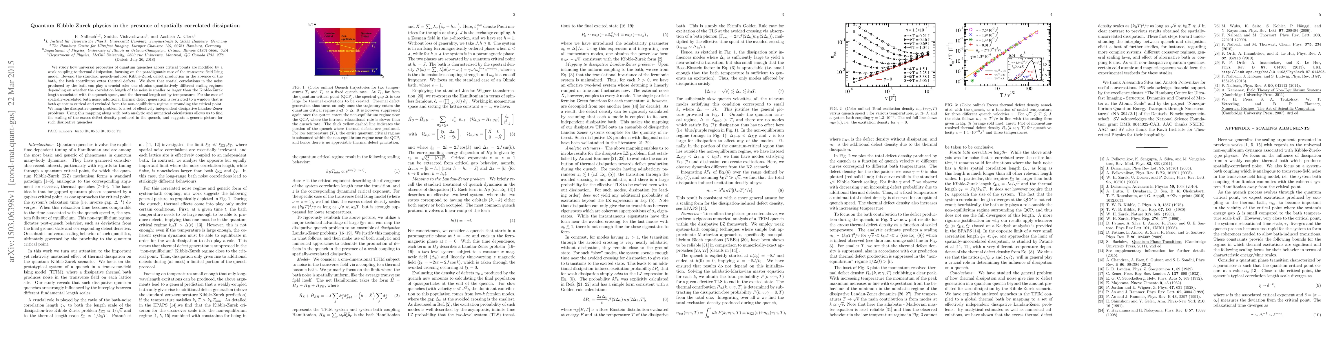 Researchers study how thermal dissipation affects quantum quenches in critical points, finding that spatially-correlated bath noise restricts additional thermal defect generation to a specific window, leading to quantitatively different scaling regimes.
